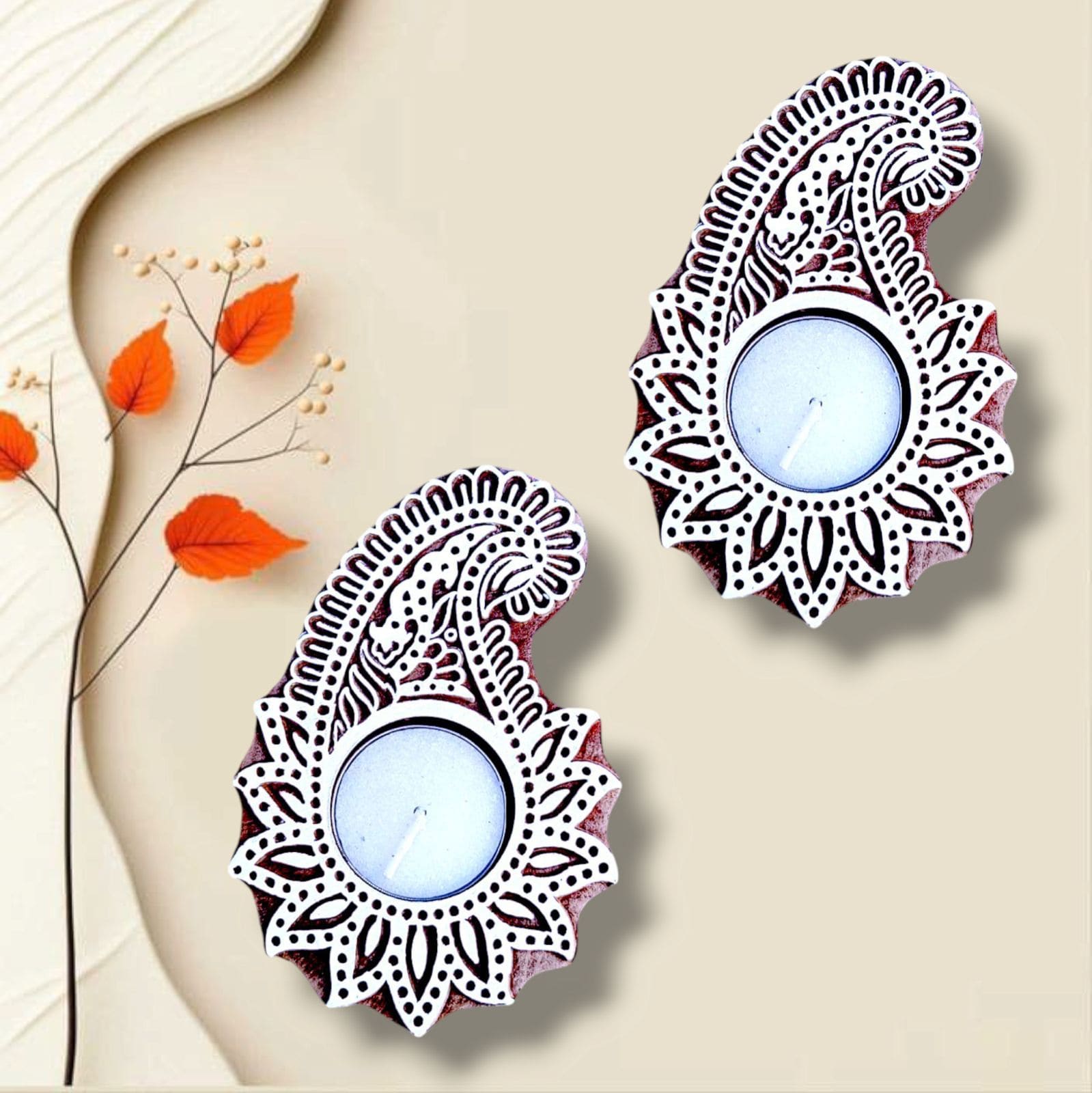 These beautifully carved tealight candle holder not only illuminate your spaces—be it homes, offices, or restaurants—but also double as printing blocks, showcasing their multifunctional design.