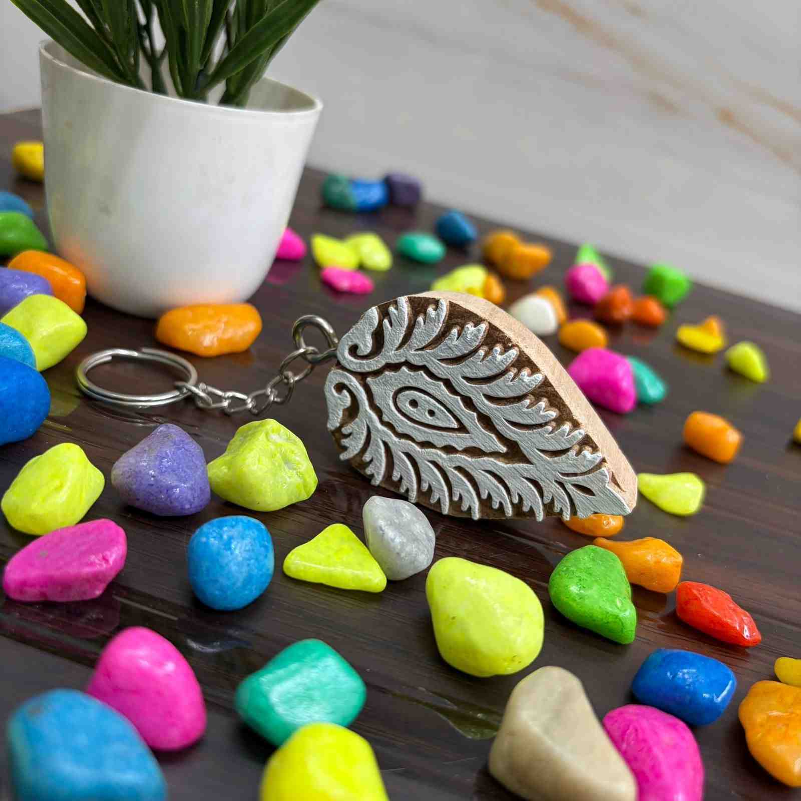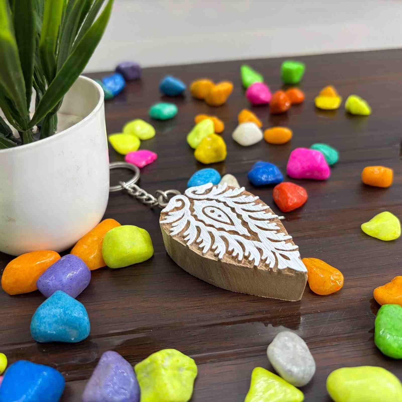 Each Wooden key chains leaf design is crafted with attention to precision and detail, with handcrafted wood carving Crafted with polished metal finish. Our collection caters to the preferences of every biker. Available in various sizes and finishes.